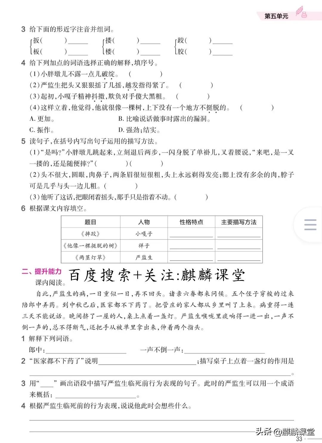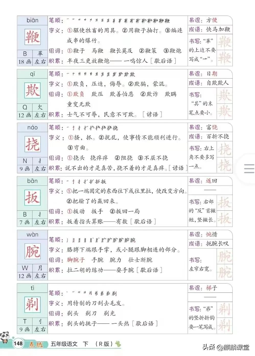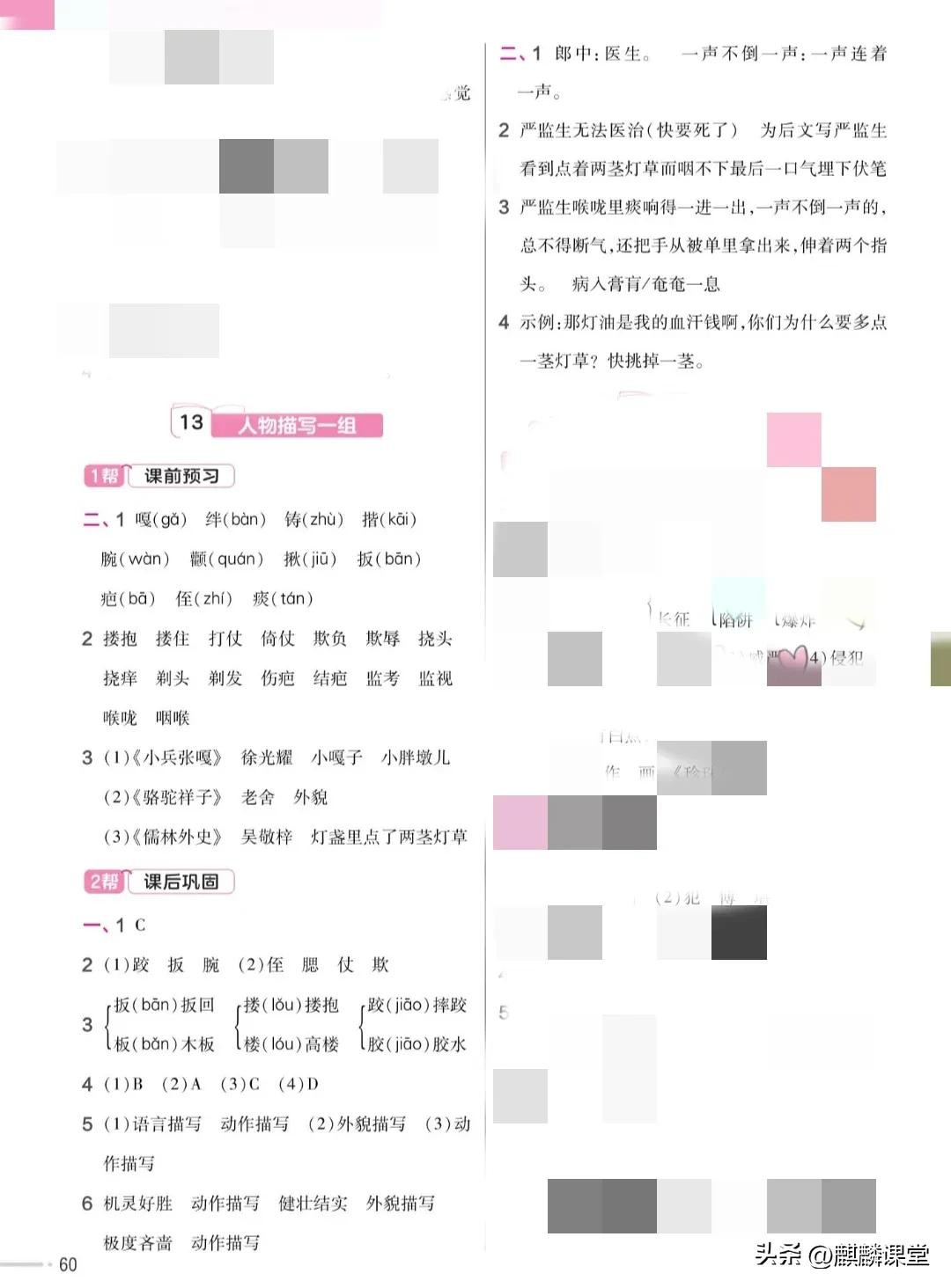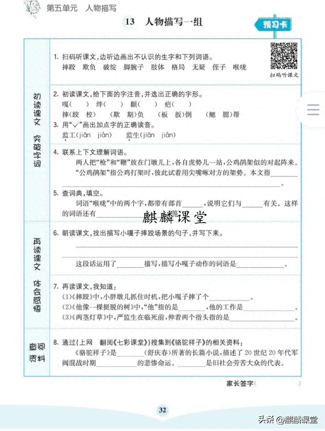 五年级语文下册十三课《人物描写一组》课文笔记和知识点汇总