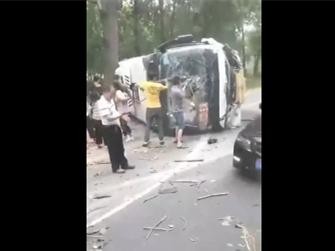现场视频显示,客车与轿车发生相撞后,客车侧翻在地,路过的群众迅速赶来用树枝砸破车窗的档风玻璃,救出被困的师生。小轿车车头被撞碎,车胎损毁。