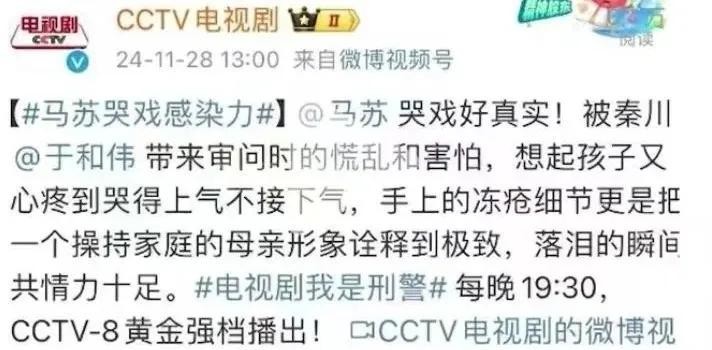 在电视剧《我是刑警》中,马苏的哭戏被央视力赞!