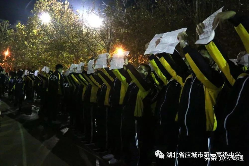 人到齐后,开始整队,原地踏步,甩起胳膊,喊着“二中强!二中强!二中第一!我们第一!”,那激昂的呐喊声,将沉睡的夜彻底叫醒。