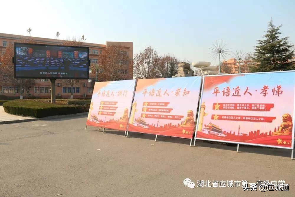 走进校门,大屏LED在播放着中央一台的《平语近人》节目,播放学校的宣传片。