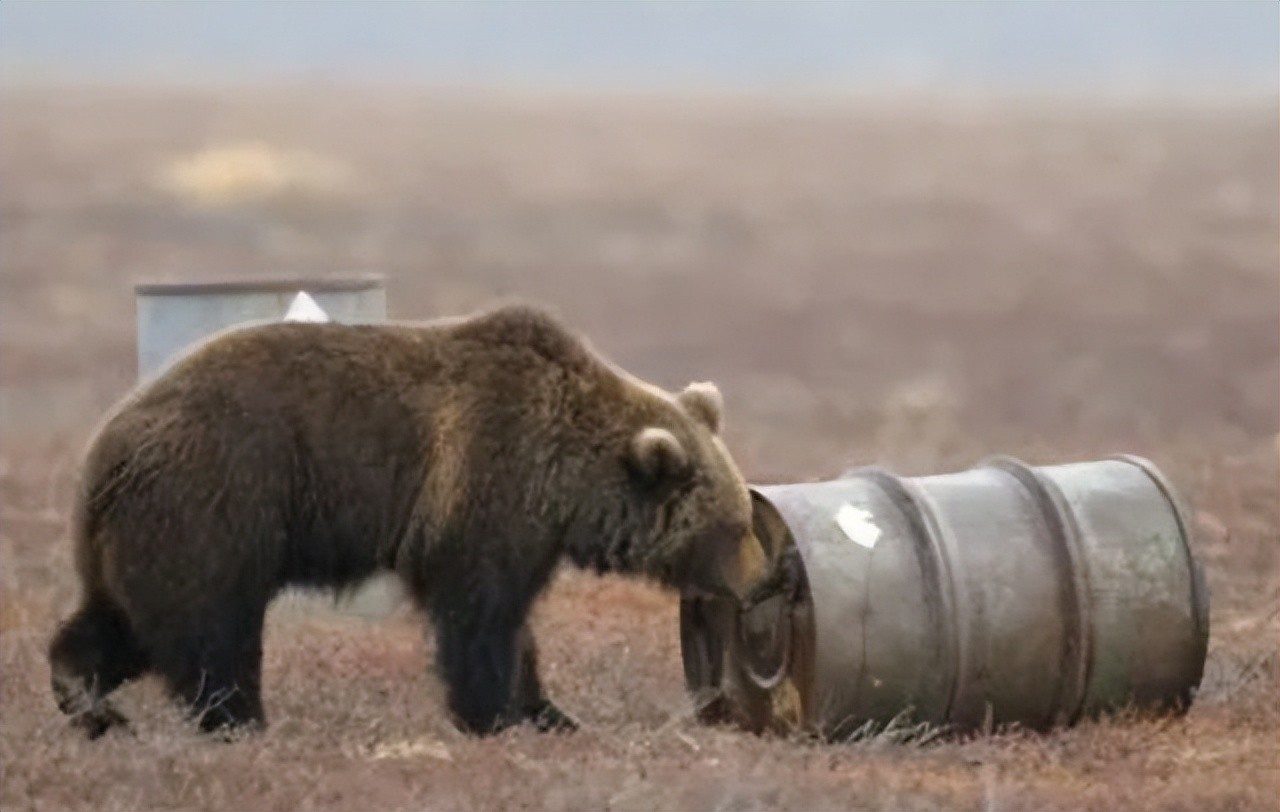 它们经常会成群结队,用爪子扒拉机场周围丢弃的航空燃料桶,然后将头凑过去使劲闻。闻上头了,这群熊就跟喝醉了一样倒在地上,庞大的身躯兴奋地滚来滚去。
