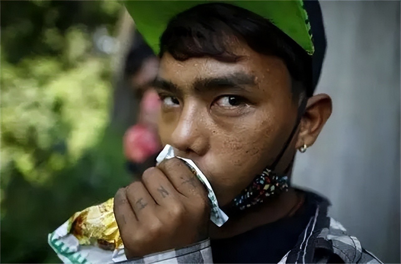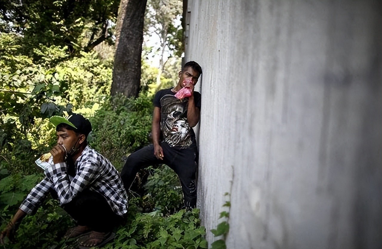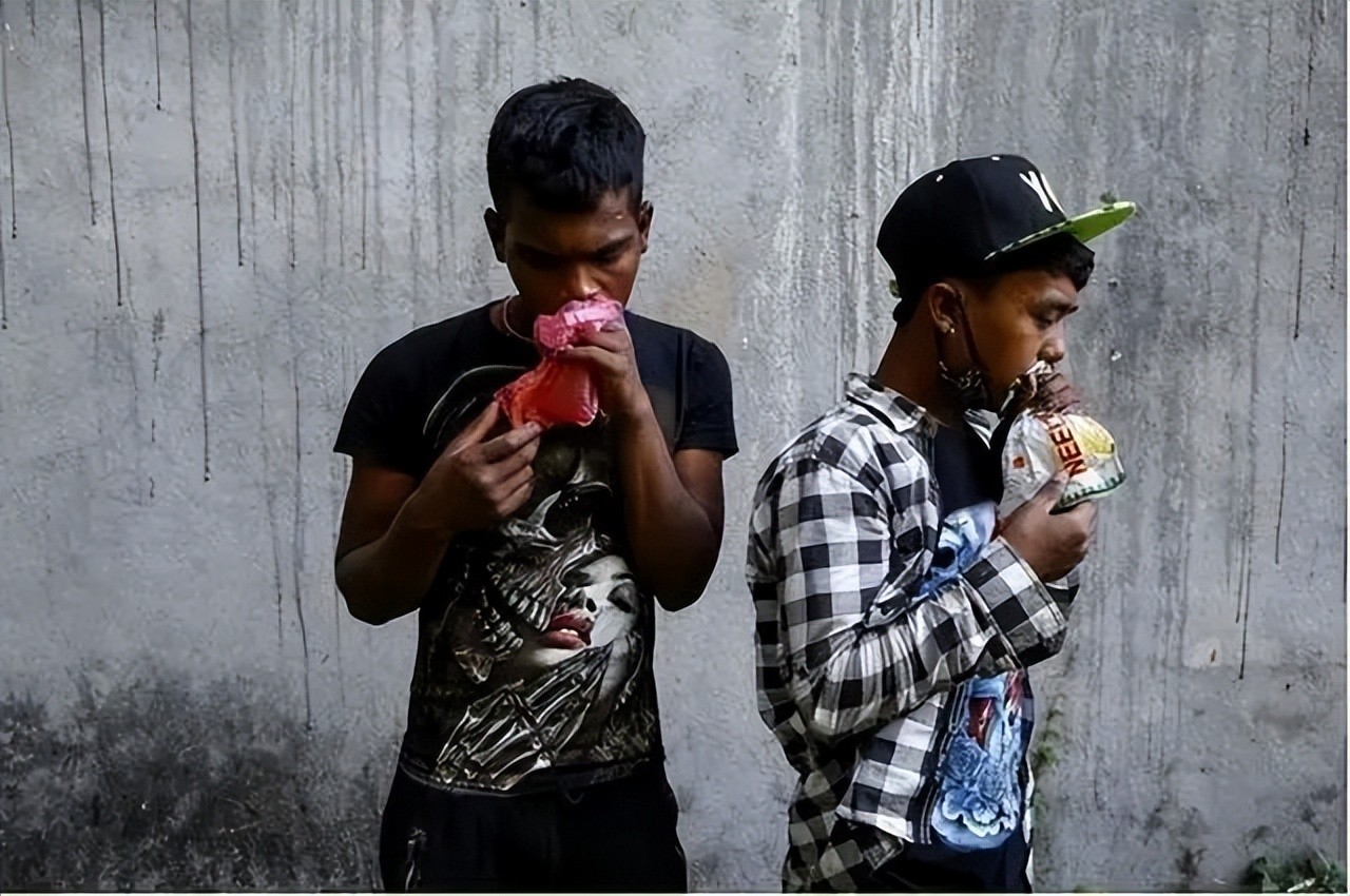 他们的身上爬满了苍蝇,手里还拿着一个瓶子,时不时就拧开瓶盖闻一口,露出飘飘欲仙的表情。更令人感到毛骨悚然的,是走在街上的少年。他们瘦骨嶙峋,宽大的衣摆在风中飘荡,眼睛里没有年轻人的神采,只有空洞和麻木。