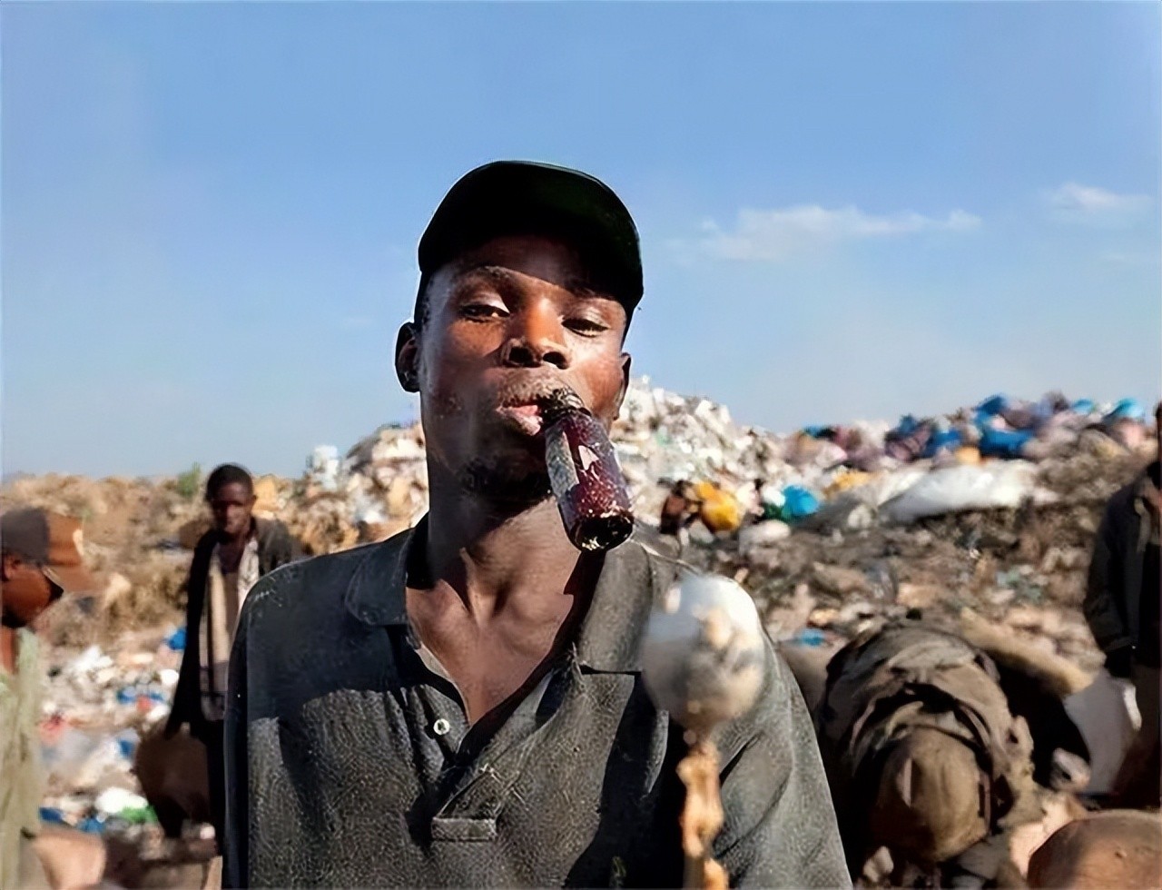 于是,孩子们围绕在垃圾堆旁边的景象不见了,取而代之的是坐在垃圾山上,抱着瓶子不撒手的呆滞小孩,还有一群神色恍惚的青少年。