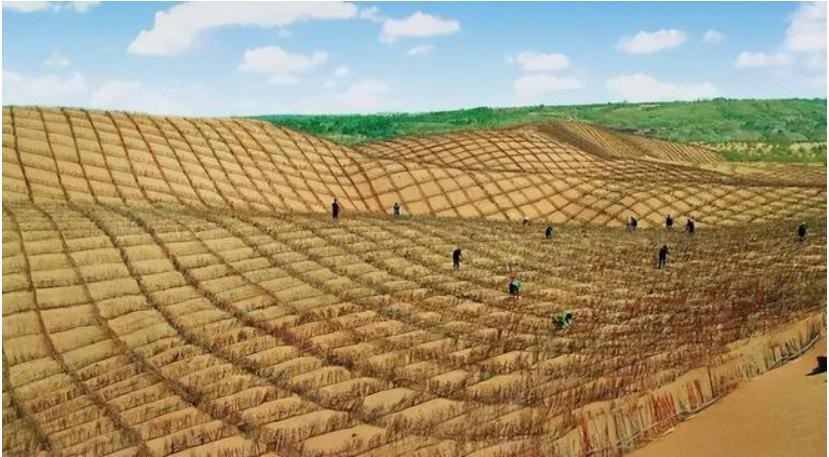通过科学的治沙技术,结合民众的共同努力;