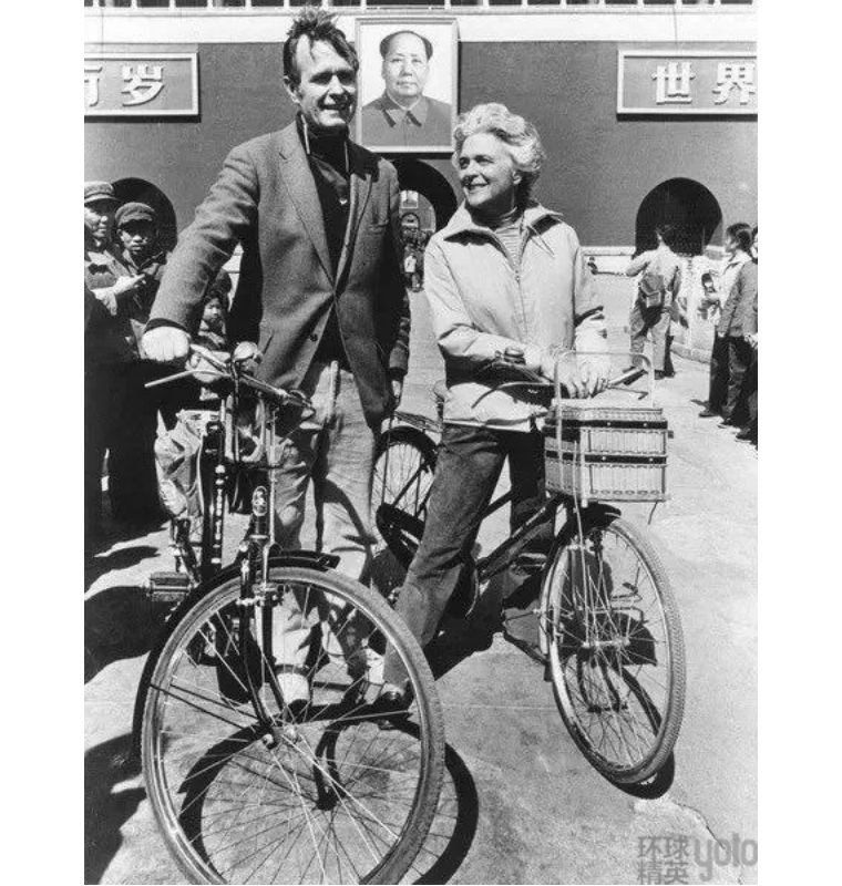 1974 年,老布什被福特总统任命为美国驻北京联络处主任,在华期间,老布什最有名的就是“骑自行车了解北京”。他经常和妻子骑着自行车穿行于北京的胡同,由于当年外宾稀少,他们曾引起中国老百姓的关注和围观。他曾回忆称,之所以选择中国而非英、法,是因为“更有挑战性”,中国正在崛起,美中关系的前景对全世界关系重大。而他对中国的积极态度影响了众多美国政客,并被认为是其子小布什总统对华政策逐步趋向积极的重要因素。