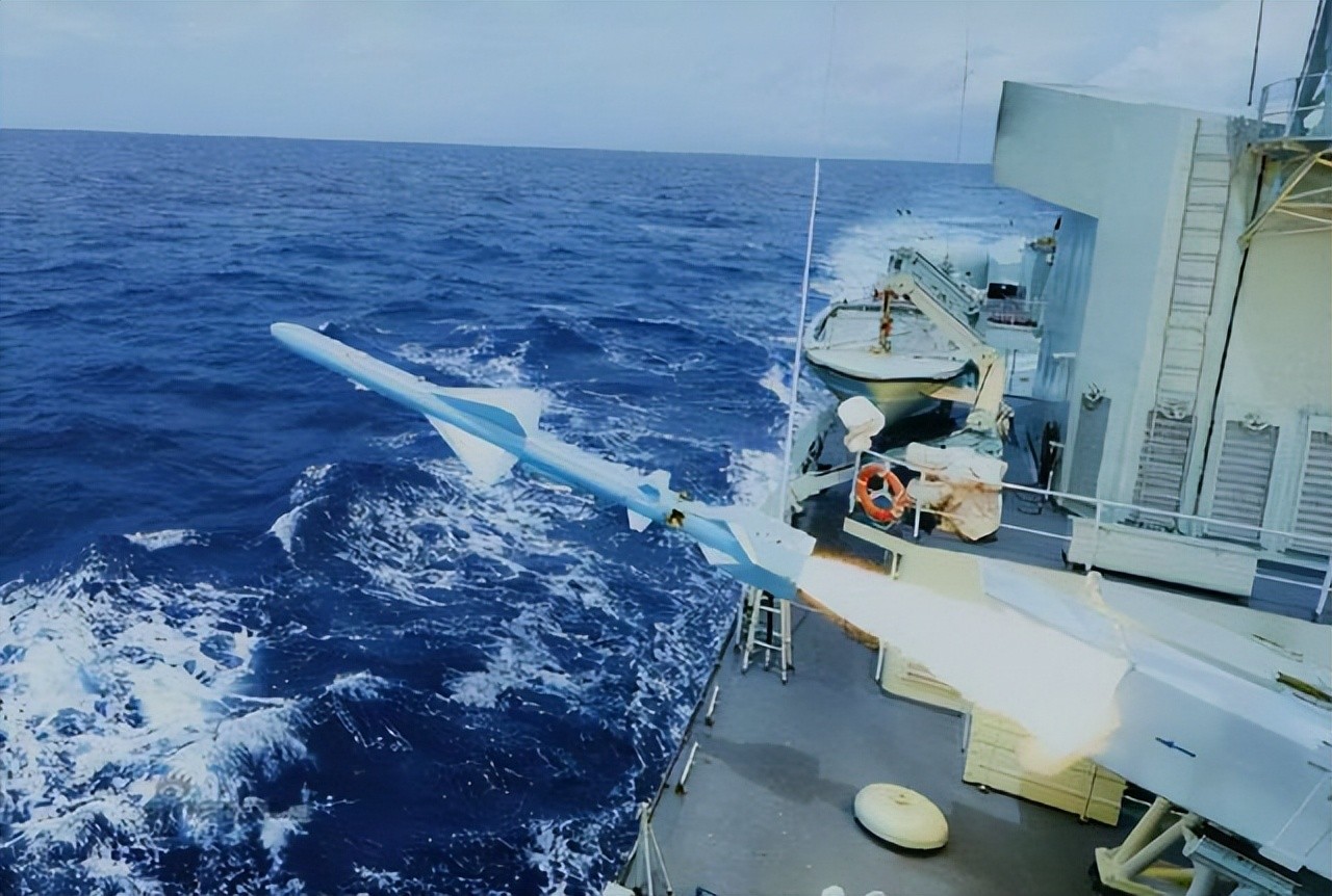 2座四联装C-802反舰导弹,位于主桅杆和烟囱之间,采用惯性+中继和主动雷达末制导,最大速度0.9马赫,射程120千米,末端飞行高度3-5米。