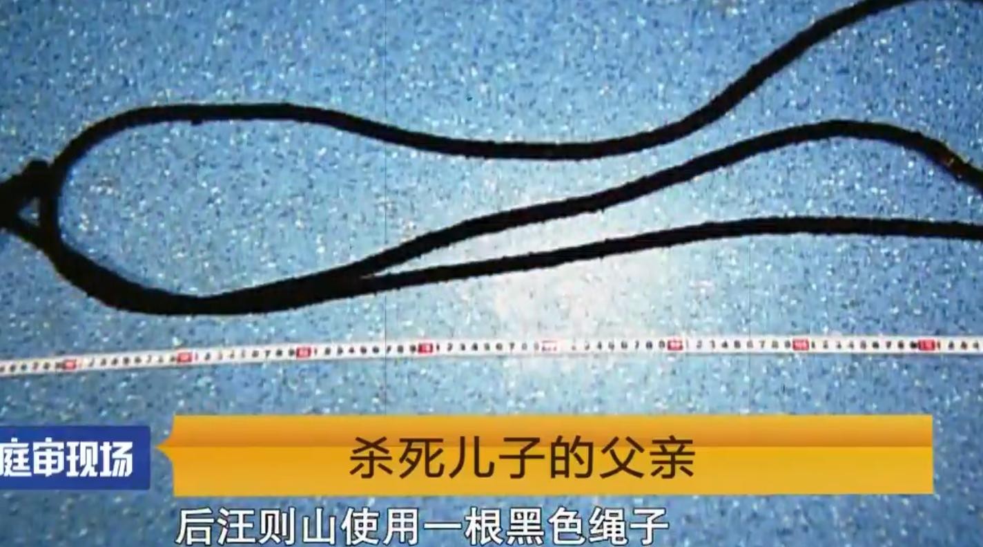就在此时,汪则山还不罢手。又拿起板凳继续砸击儿子头部。直至木椅碎裂。最后,汪则山又用一根黑色绳子套在儿子的脖子上,将儿子活活勒死。