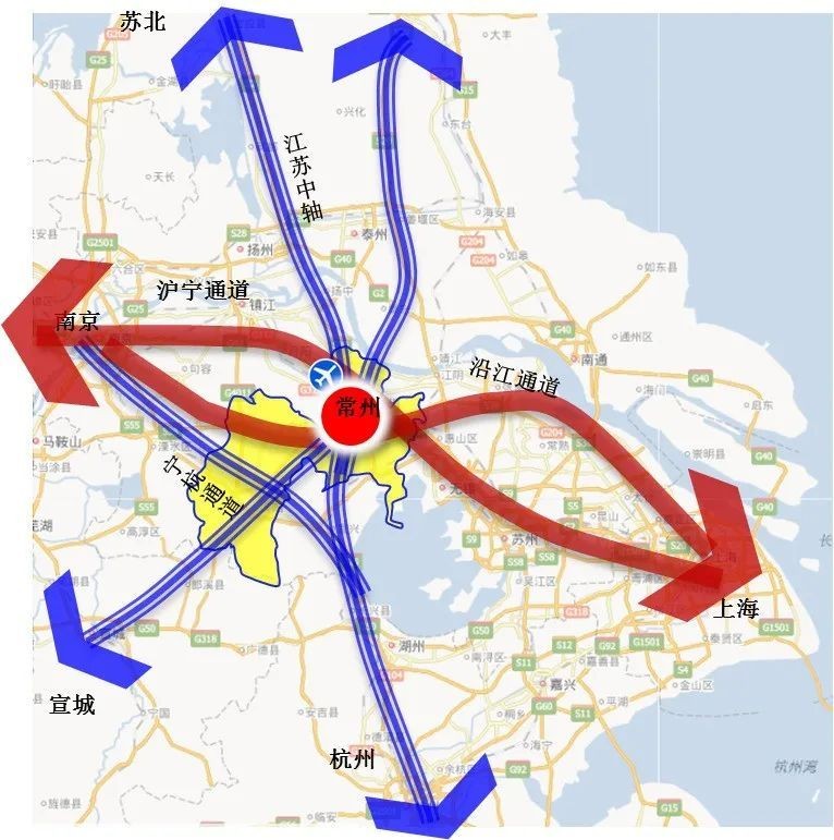 以打通中轴通道为核心,促进我市形成“承东启西”与“沟通南北”并重的对外交通格局,形成“长三角中轴枢纽”,强化对苏中苏北的带动,促进江苏全域高质量均衡发展。