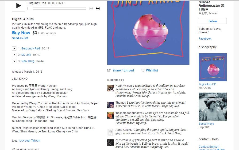Bandcamp 上外国人对《Jinji Kikko》的评价