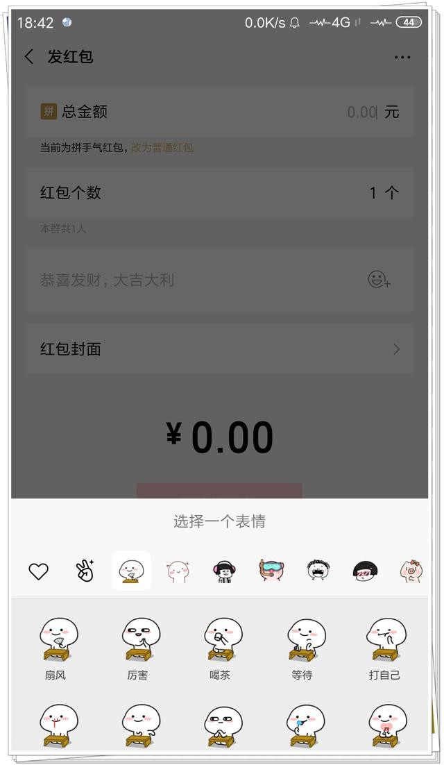 那么大家肯定很好奇这种带有gif图的表情包是怎么制作的呢?其实也很简单哦!在大家往群里发红包的过程种,输入金额以及红包个数,再点击右边的【表情】,把gif表情图添加进来,然后发送就可以了。