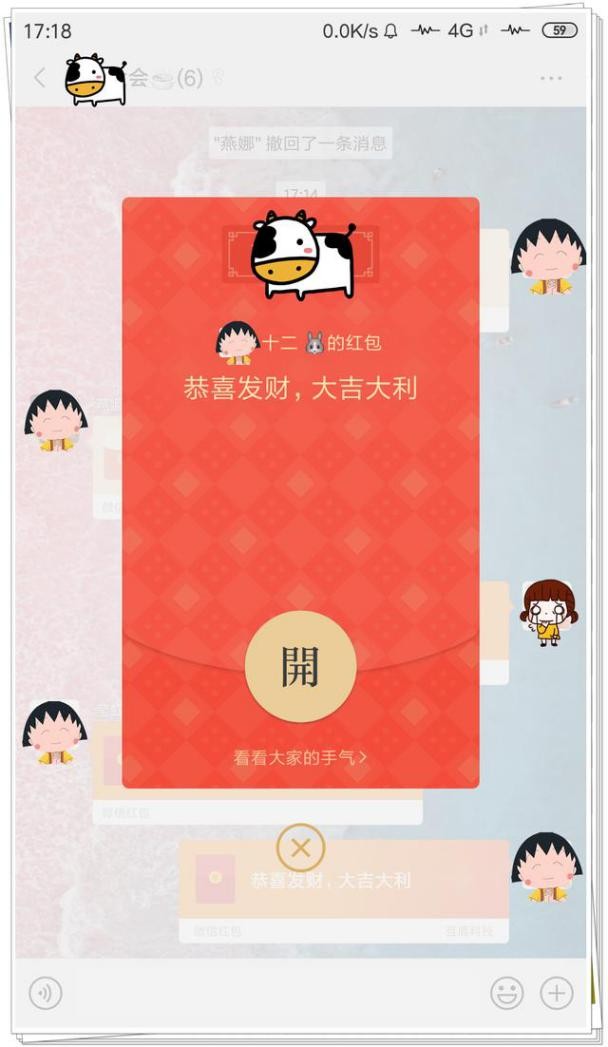 无论你怎么尝试,你发现红包上的"开"字,你永远都点不开,其实这就好友的整蛊红包。