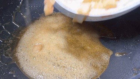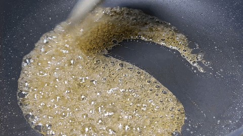 10. 然后水分蒸发,熬成焦糖色即可关火