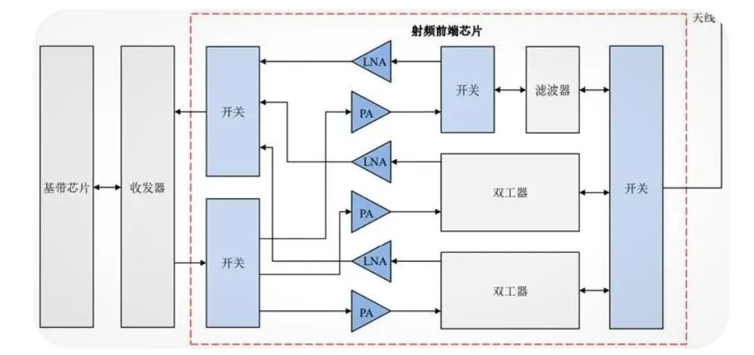其它什么开关和 LNA器件,有卓胜微、韦尔股份、昂瑞微、紫光展锐、艾为电子、唯捷创芯等几十家。