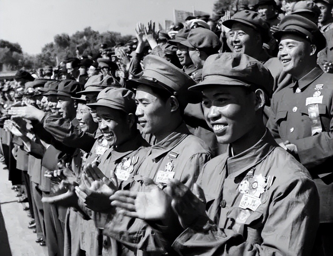 (1953年国庆节在天安门的志愿军归国观礼代表团,志愿军代表们佩戴的军功章主要是朝鲜政府为志愿军颁发的勋章奖章)