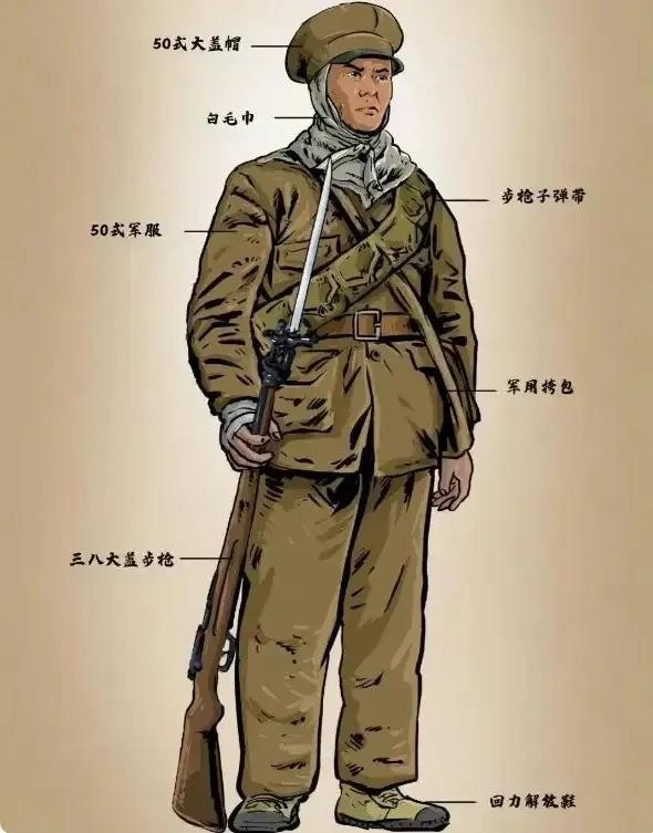 总之,《冲锋》里杨根思及他的战友们,身上穿的是标准的50式军服,完全没有问题,而且非常符合历史。而且,中国人民解放军入朝,改名为中国人民志愿军,名字的变化,是为了不给美国人抓住把柄。因此,入朝前我军将士统一摘除了帽徽和胸章,《冲锋》里有一个杨根思所在连队在火车上统一摘除帽徽和胸章的细节,也与历史对得上。