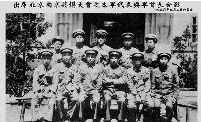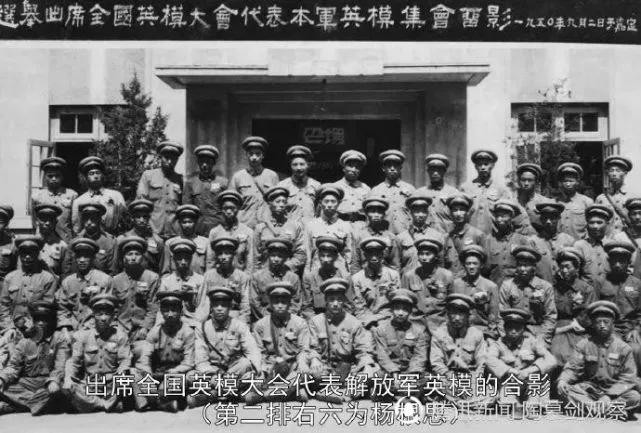 上述为1950年入朝前杨根思参加“全国战斗英雄”表彰大会,受到毛主席接见,他和战友们的合影中普遍戴着大檐帽。