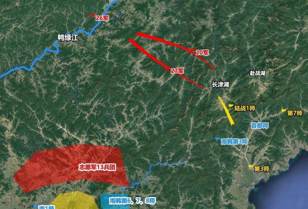 9兵团抵达朝鲜战场后,战略目的就是要狠狠地打击美军,尽力成建制吃掉美军七八个团,分配到东线战场,目的基本上吃掉陆战1师或者美7师。其中,9兵团20军被部署在长津湖以西中前部,负责对付陆战1师。27军被部署在长津湖以东及西部后侧,负责对付美7师。后入朝的26军则是预备队,在后方待命。