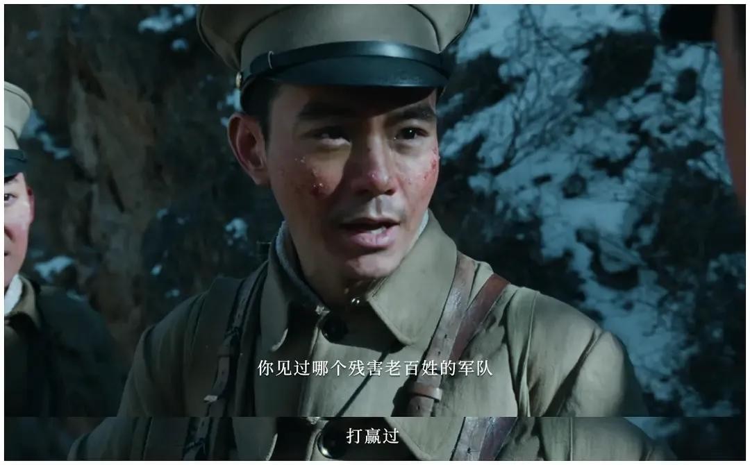 反倒是《长津湖》里欧豪饰演的杨根思,尽管在片中只有40秒的镜头,但欧豪的演绎还是非常不错的,尽管服装上不太对,但表现力上值得赞扬。