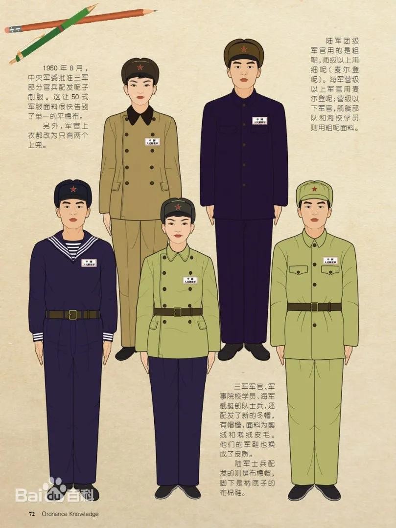 1950年1月4日,“50式”军服是在解放军全军范围内全面发放,正式统一军服样式。
