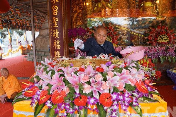 中国西藏网讯 一年一度的浴佛节,是华夏佛门弟子,以及尊崇、皈依、敬仰释尊的信众入夏后的第一个重大宗教节日。5月3日(农历四月初八),中国佛教协会在佛牙舍利供奉地——北京灵光寺举办盛大佛诞节庆祝活动。中国佛教协会副会长、北京广济寺方丈演觉法师代表中国佛协向全国佛教四众弟子致以美好的节日祝福。
