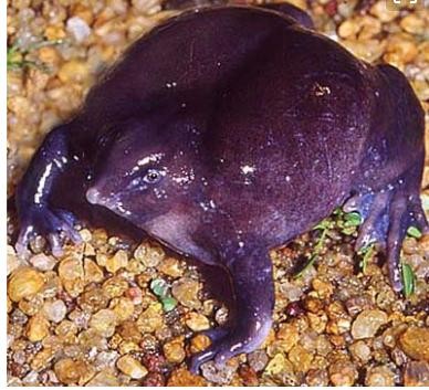 紫蛙自然界中堪称活化石的动物,迄今只发现的紫蛙是2003年,在印度高止山脉地区被发现,根据科学家分析,紫蛙属于生活在远古恐龙时期的一种特殊的蛙类的分支种类;紫蛙通体呈亮紫色,看起来像饱满的李子,又因为嘴与猪十分相似,所以又被称为猪鼻紫蛙,专家认为,紫蛙之所以迟迟没被发现,是因为它们生活于地下,只会在雨季的时候现身两周,其他时间一直过着隐身的生活,它们会用自己短而结实的后腿挖洞,最深可达3.7米,它们会在地下寻找白蚁作为食物,只有等到雨季才会钻出地面寻找配偶交配,所以只能等到紫蛙交配的时候,科学家们才能够发现它们;目前紫蛙也是一种濒危的物种,当地的人认为紫蛙具有药用价值,因为被当地人大量捕捉,食用或者贩卖,这使得紫蛙走向了灭绝的边缘。