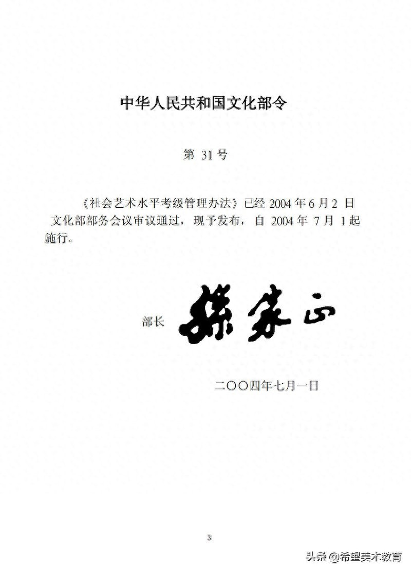 《社会艺术水平考级管理办法》已经于2004年06月02日文化部部务会议审议通过,现予以发布,自2004年07月01日起施行。