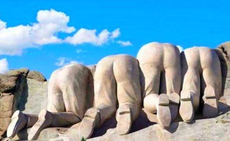 在网络上还有关于总统山的一则趣闻广为流传,那就是别看这四位总统的雕像如此伟岸,高大。但是如果你绕到他们的背后去看的话,你就会发现他们四个人永远保持着跪姿,这代表着虽然他们贵为总统,但是依旧还是要为人民服务,臣服于人民的权利,并且还附有图片,让人对这则说法深信不疑。但是事实真的是这样吗?
