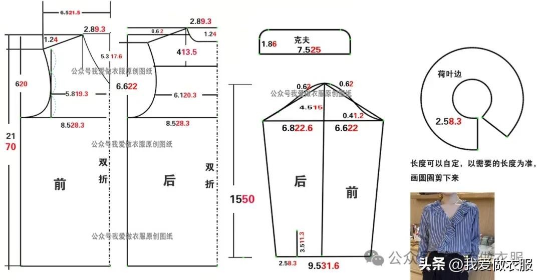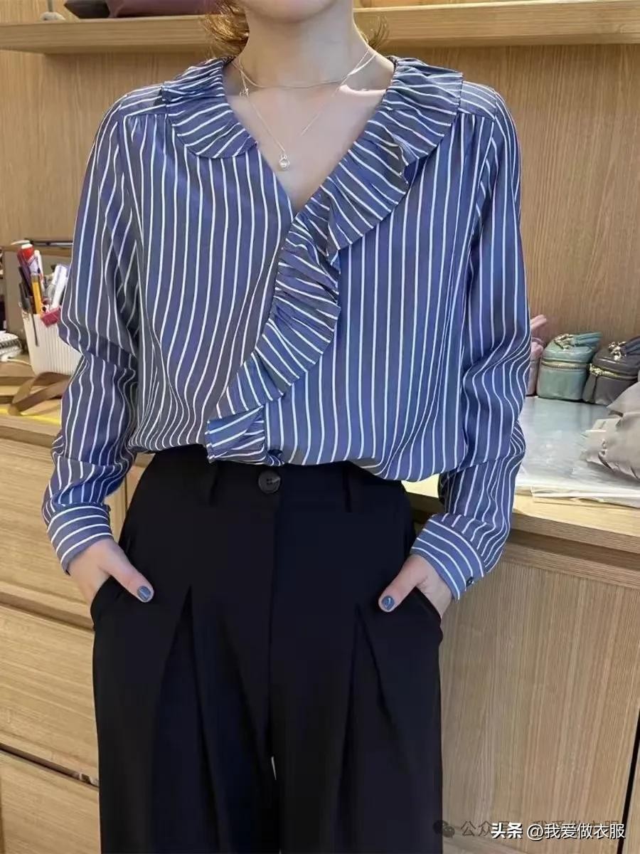 初秋荷叶边衬衣裁剪图,喜欢收藏吧!