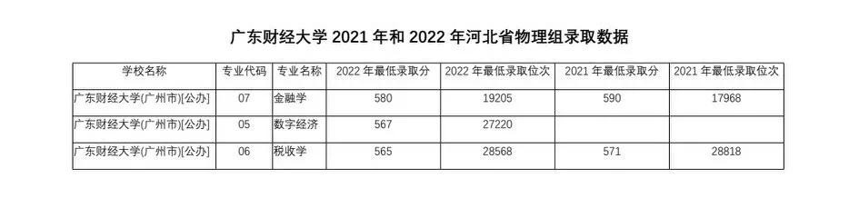 附上广东财经大学2021年和2022年在河北省招生物理组录取数据,仅供各位家长参考: