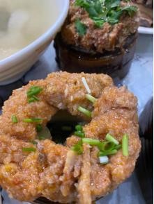 肥肠格格的第二顿做出来真的是美味至极。肥肠格格直接下油锅,稍微炸透,再捞起来;加刀口海椒、花椒和蒜末,用滚油淋,做成炝锅粉蒸肥肠,好吃极了;或者炸后加豆瓣、蒜苗炒,做回锅粉蒸肥肠,也很美味。