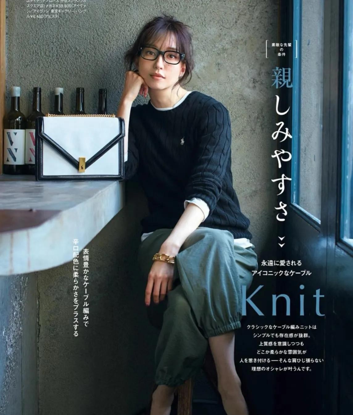 - 上衣:绞花针织衫(V领设计修饰颈部线条)