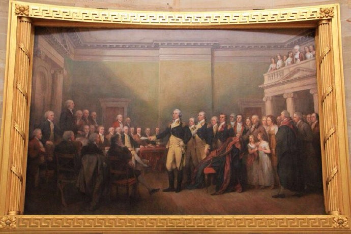 1783年12月23日,乔治·华盛顿向联邦议会辞去了大陆军总司令的职务,这是美国历史上极为重要的一刻,被认为是美国历史上最伟大的退场。华盛顿说: