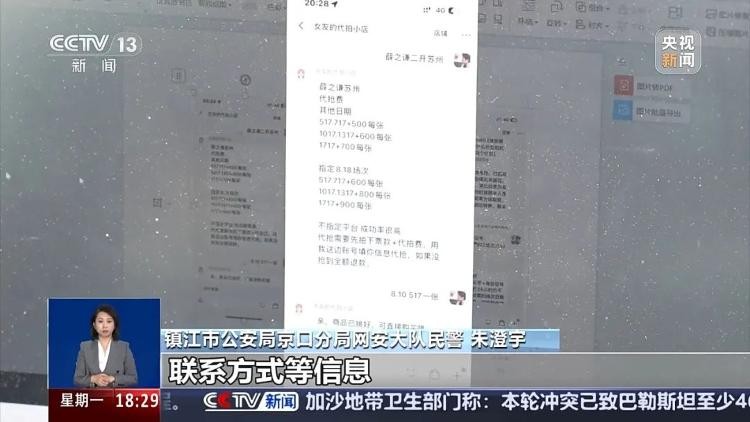 镇江市公安局京口分局网安大队民警朱澄宇:我们摸排发现,这家网店主打演唱会门票代拍服务。买家只需提供身份证、联系方式等信息,卖家便根据演唱会热门程度和座位稀缺程度,在原价基础上加价200元至数千元不等,为买家代抢门票。而且,他们承诺如果没抢到票,将全额退款。