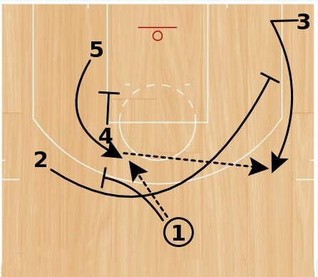 3号从1和2两名球员之间迅速穿过来到弧顶,而放出自家球员后,电梯会马上“关门”----将跟随3号的1号防守人挡在门外,而3号射手在弧顶拥有绝佳的空位机会完成投射。