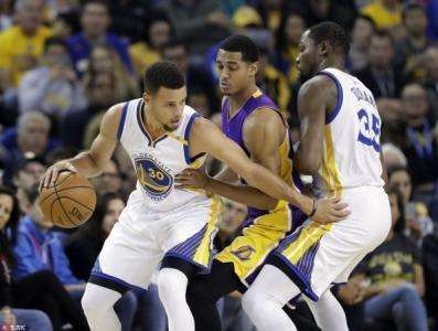 2、夹击射手,这是很多队伍面对勇士时对库里的做法。一旦库里持球,两名防守队员就上线夹击,不让库里打开局面,也就是从源头切掉这一战术的实施。