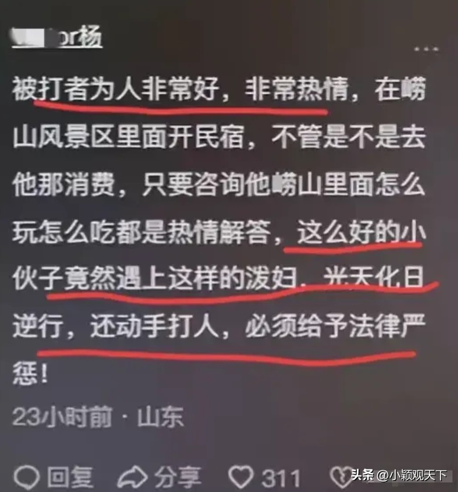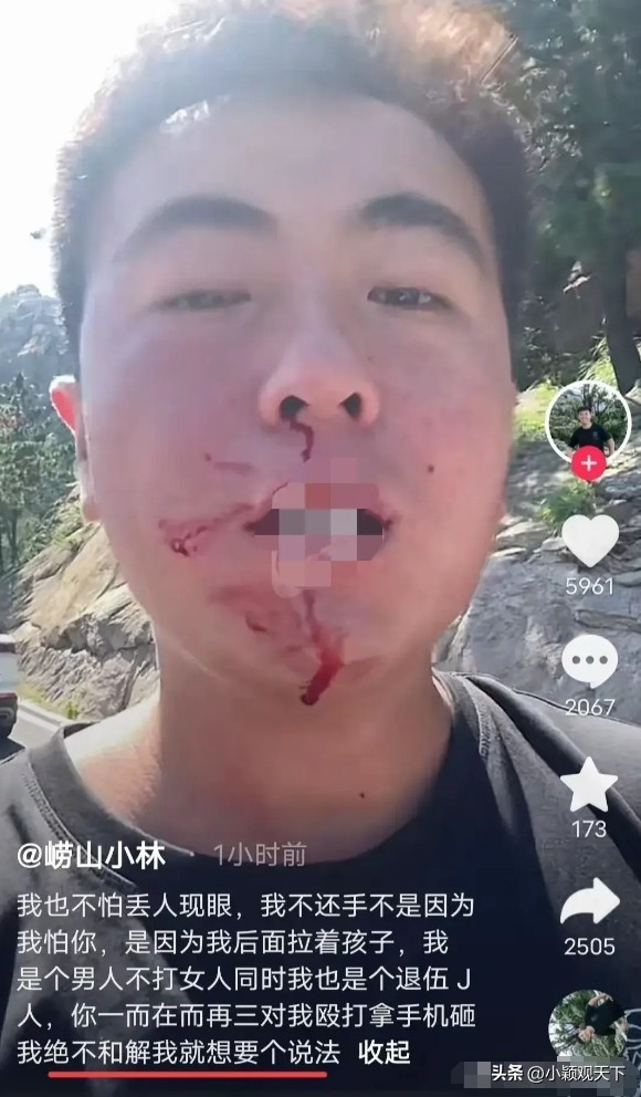 上前疏导交通的景区大爷,也被王某一顿推搡。林先生本人,更在王某的暴力之下,口鼻流血,场面一度失控,此女真是惹不起啊。