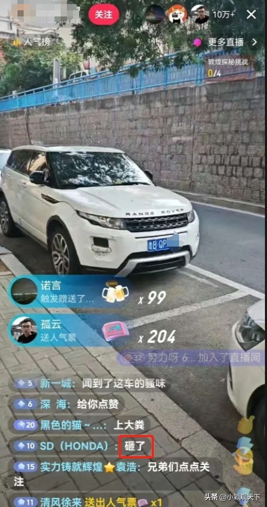 很多博主也是来到现场,附近围观了很多人。一位博主的直播间涌入10多万人在线观看,大家都好奇,到底谁来开走这辆车。