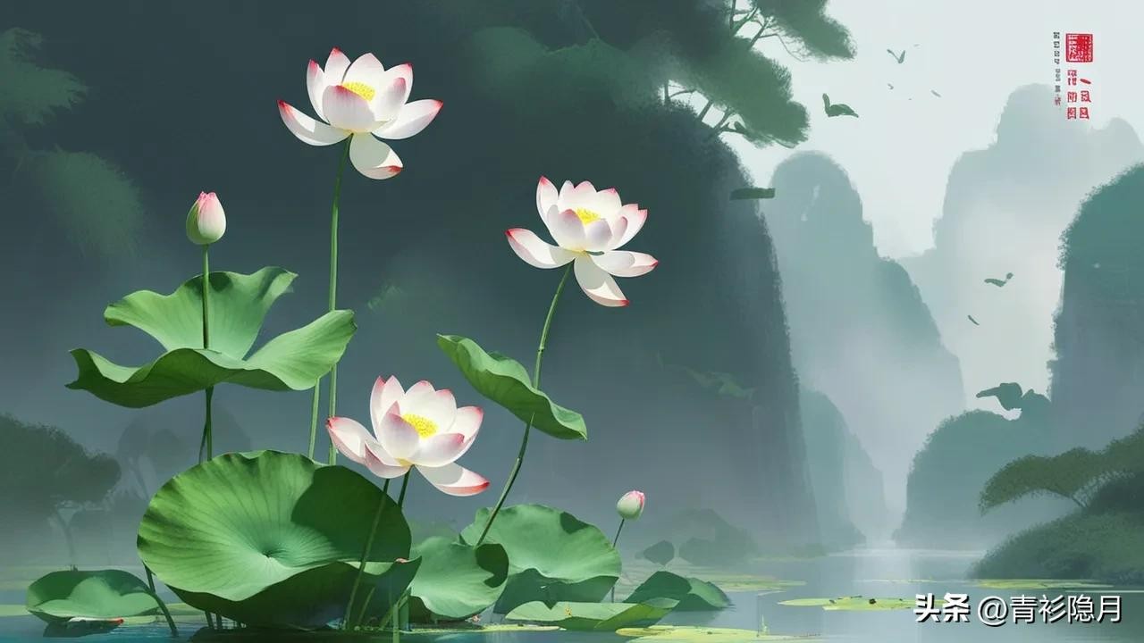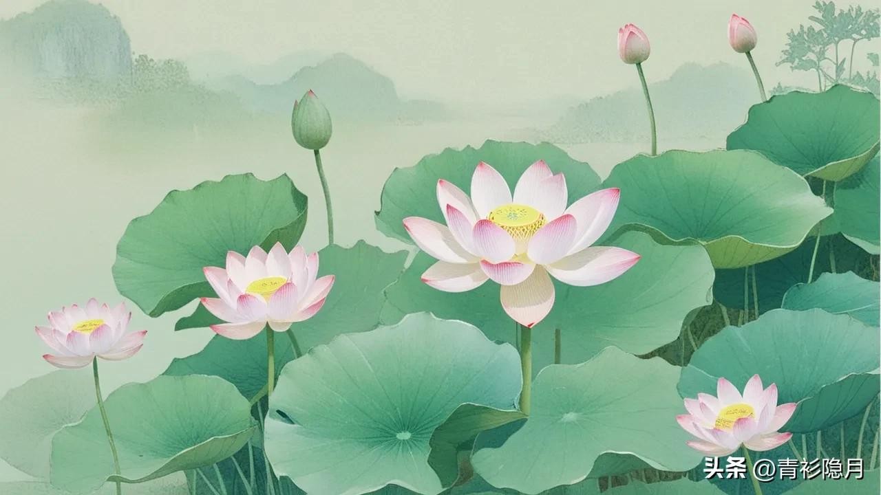 20句古诗带你领略荷花的清新与高洁,镜湖三百里,菡萏发荷花。