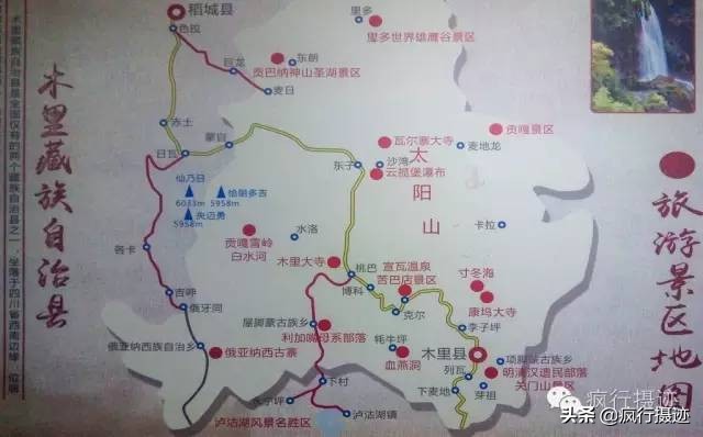 木里旅游景区图,可以看到洛克线的大概