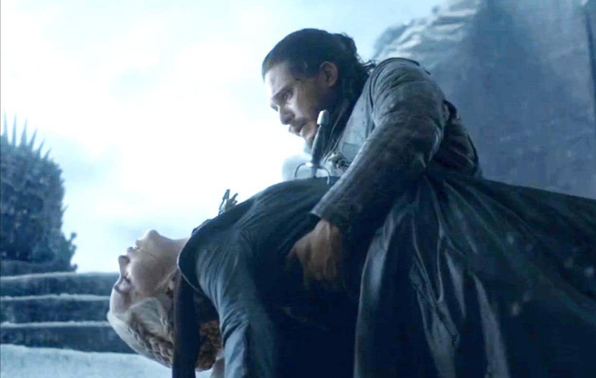 往后的日子里,君臣亲密无间(这组CP仅限于君臣,)共商国是,不断收复失地,直至最后一城,直面其死对头——"太后"瑟曦,该剧另一女主(这个角色也非常值得看)。已升级到4.0的龙妈,或许这已是"算法"能给到她的最高层级,这时候安排她遇见并且爱上了男主雪诺——其真实身份居然是她的侄子,就是前面提到的她死去大哥的儿子,也就是说这位才是铁王座第一顺位继承人。嗯 ,这情节够虐!也够……雷同!侄子爱上姑姑,这桥段咋这么熟?到底是谁抄了谁?……唉,跑题了!最后的最后是,龙妈倒在了她心爱的人怀中!……(侄子带着一脸复杂的表情,一刀结果了可能已无法修复bug的姑姑)