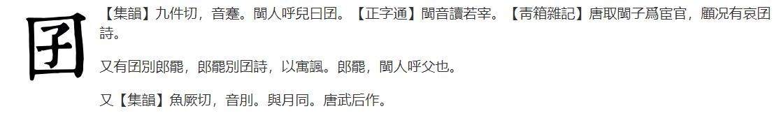 康熙字典关于囝的注释解析