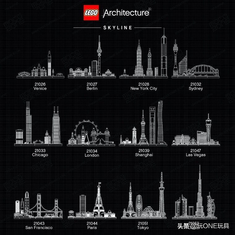 而在这些建筑系列中,天际线skyline则是以世界各大著名城市为单位,将单个城市中驰名建筑汇集在一个套装中,目前已经推出了12座城市的精彩套装。大量平滑的乐高零件,简约而精巧的风格使这款乐高变成了很多玩家家中的收藏。