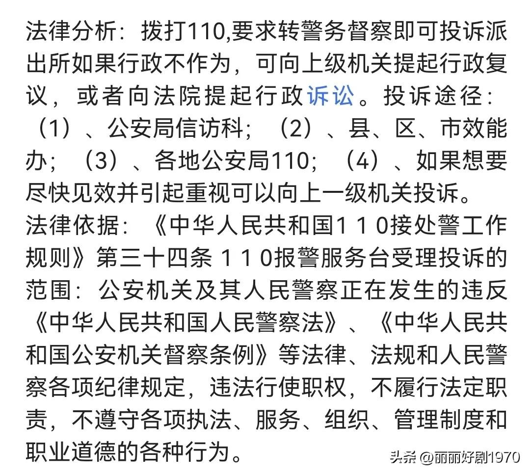 法律依据:《公安机关督察条例》第九条 督察机构对群众投诉的正在发生的公安机关及其人民警察违法违纪行为,应当及时出警,按照规定给予现场处置,并将处理结果及时反馈投诉人。