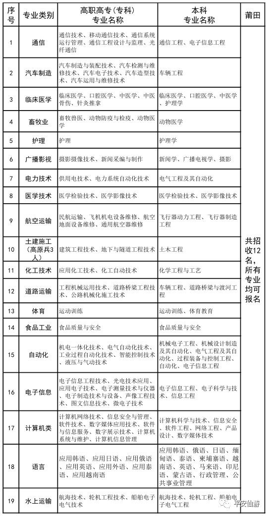 省征兵办分配我市12名直招士官预征对象,具体专业类别和专业范围见附表。