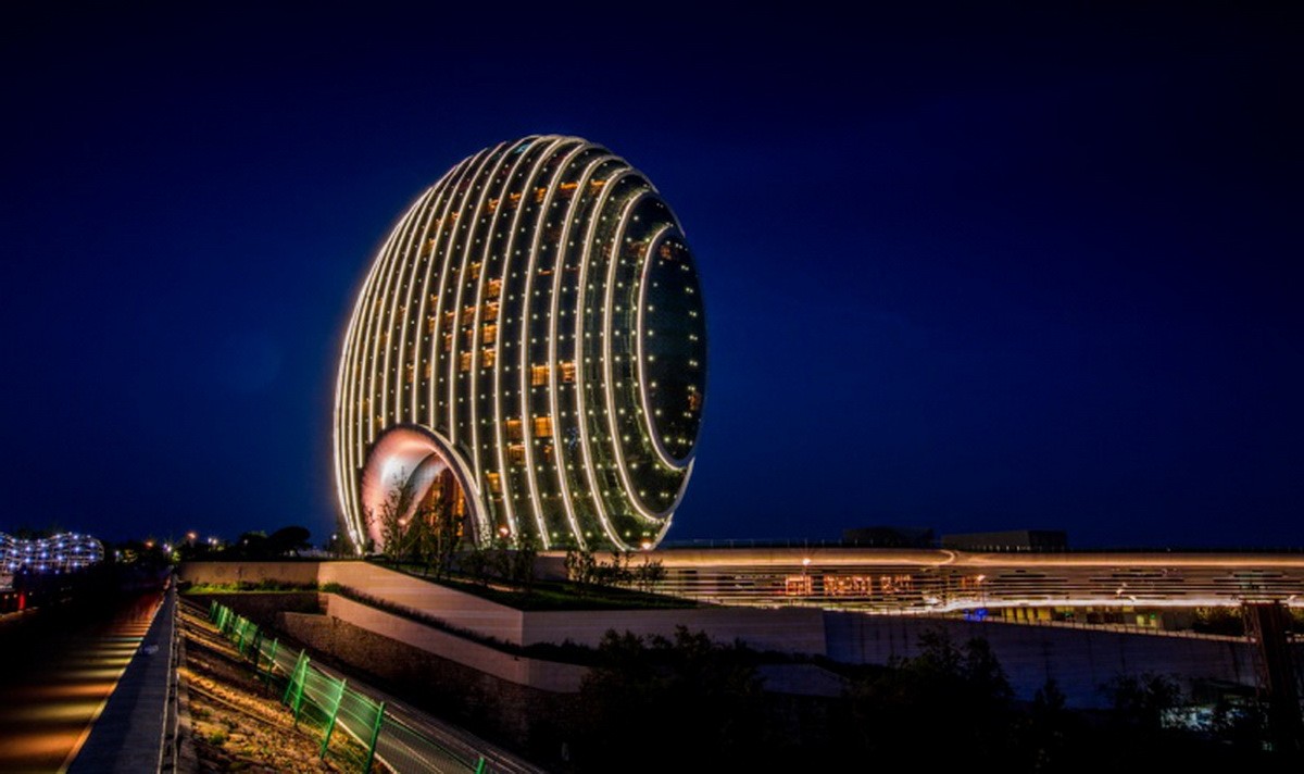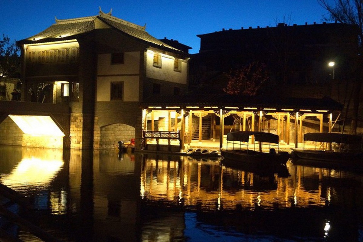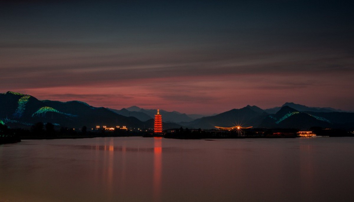 雁栖湖位于怀柔城北8公里,自然风光旖旎,因为其三面环山,夜景绚丽多彩,变化的灯光,就像把人带到梦幻的世界。