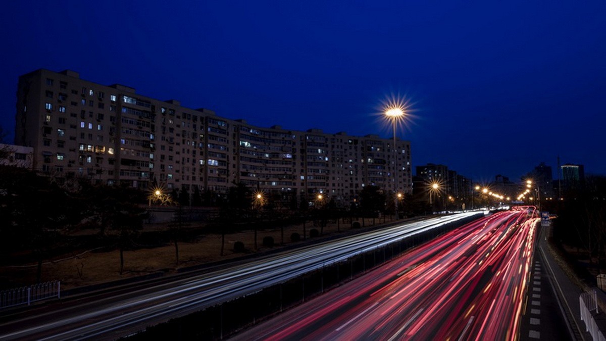 川流不息的东二环,不管从构图还是光影方面都值得一拍,在这里拍摄最主要的是找到灯光的运动路线,即“光轨”。当然这里我们要把相机固定,还需要找到一个有庇护的位置以阻隔强风和呼啸而过的汽车带来的气流冲击。