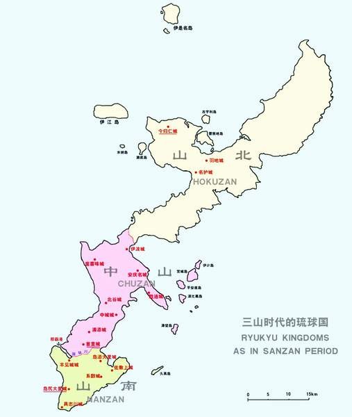 当朱宽一行途径今日北起奄美大岛、南至与那国岛(今钓鱼岛西南170公里)时见一片珍珠般的岛屿浮在海面中,“若虬龙浮在水面”,遂为其取名流虬。明朝洪武五年(1372年)将此地更名为琉球。需要注意的是:这时还没有琉球国的概念,这时的琉球其实是对包括我国台湾岛和琉球群岛在内的东海诸岛屿的统称,后来为了将属于我国领土的台湾岛与琉球群岛进行区别而将台湾称为大琉球,而琉球群岛则称为小琉球。台湾问题属于我国内政问题,不在本文探讨的范围之内,历史上的琉球国系指小琉球。