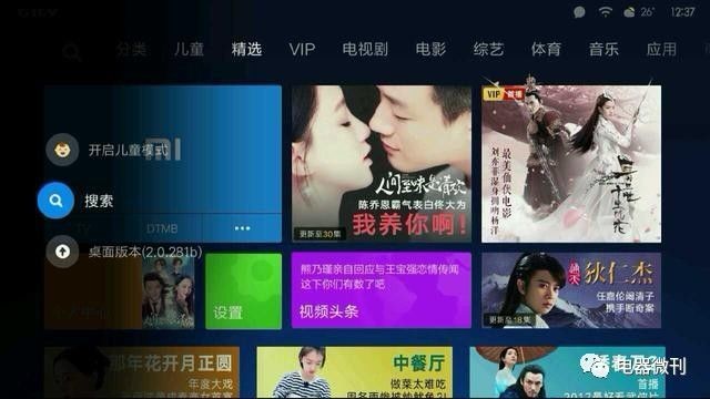 方格型的UI设计,可以使用户更加直观的发现不同种类的内容,用户仅需控制遥控器上的“上下左右”按键,即可轻松找到自己喜欢的内容,不管是老人或者小孩都可以轻松上手。