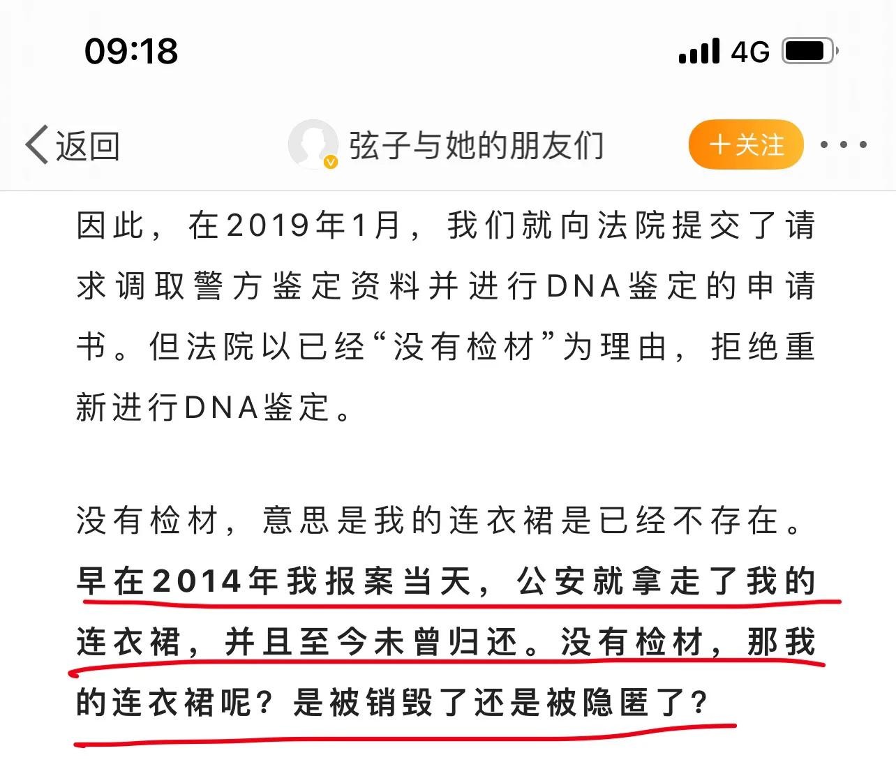 弦子在二审后发小作文说,当初警方拿走了裙子,至今未曾归还。这就有趣了。